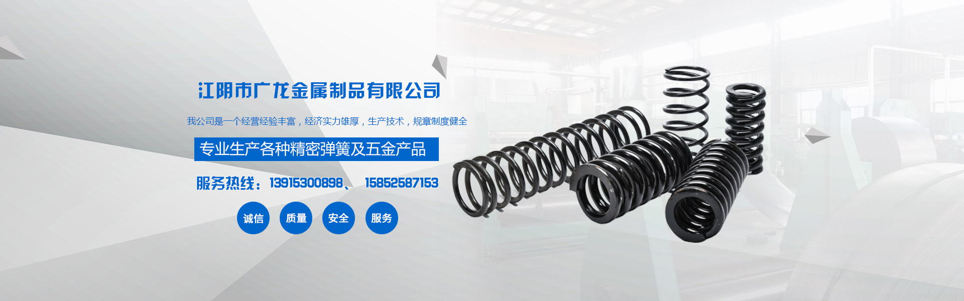 江陰市廣龍金屬制品有限公司,位于風景美麗的江陰市。我公司是一個經(jīng)營經(jīng)驗豐富,經(jīng)濟實力雄厚,生產(chǎn)技術,規(guī)章制度健全,服務多元化,產(chǎn)品多元化,產(chǎn)品質(zhì)量高的金屬制品公司。主營產(chǎn)品:電動工具彈簧、各類化妝品噴霧壓簧、各類異形彈簧、化妝品瓶蓋配重彈簧、精密儀器壓簧、卡簧、拉簧、扭簧、塔簧、油封彈簧、座椅掛鉤等彈簧兼容行業(yè)多的綜合性公司,如果您對我公司的產(chǎn)品服務感興趣,請在線留言或者來電咨詢,聯(lián)系電話:13915300898!